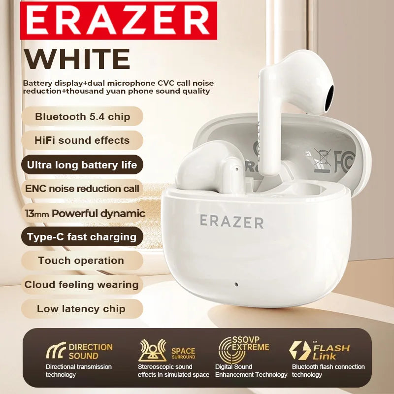 ERAZER XT69pro Bluetooth Earphones Classic Earbuds Wireless Headphones, white,black Bluetooth 5.4